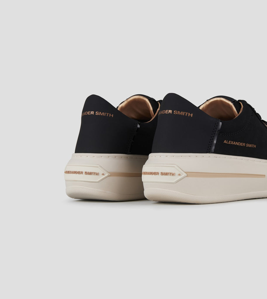Con lo stesso perfetto mix di stili, la Lancaster di Alexander Smith è un match tra i dettagli preziosi e ricercati della tomaia e degli occhielli, con l’audacia e l’importanza della suola, per uno stile che combina eleganza e unicità, in perfetta sintonia con l’anima del brand, in questa variante in suede nero e tallone in pelle gommata.