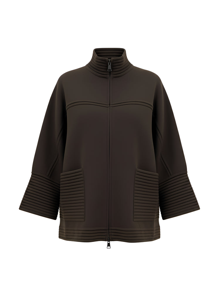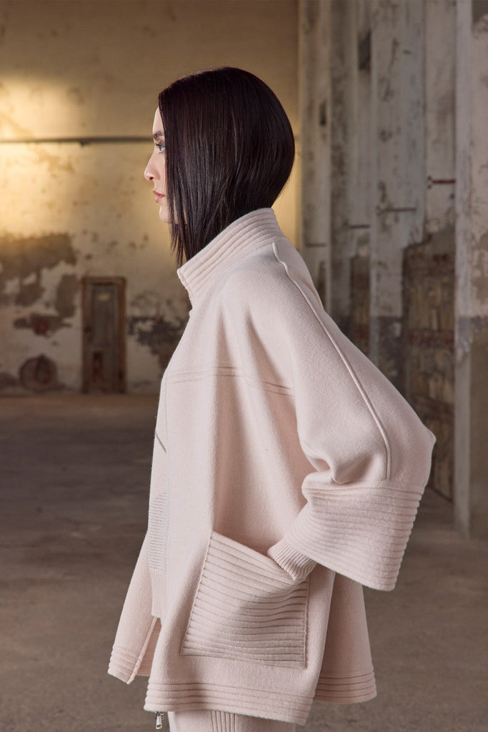 Cappa doppiata in maglia, dal taglio over che garantisce comfort, calore e morbidezza. Il collo alto e le tasche applicate con linee orizzontali texturizzate, ripetute anche sulle maniche. ll taglio ampio offre comfort e permette di indossarla sia nei look quotidiani che in abbinamenti più sofisticati è un capo essenziale per chi ama unire stile e praticità. Vestibilità oversize.