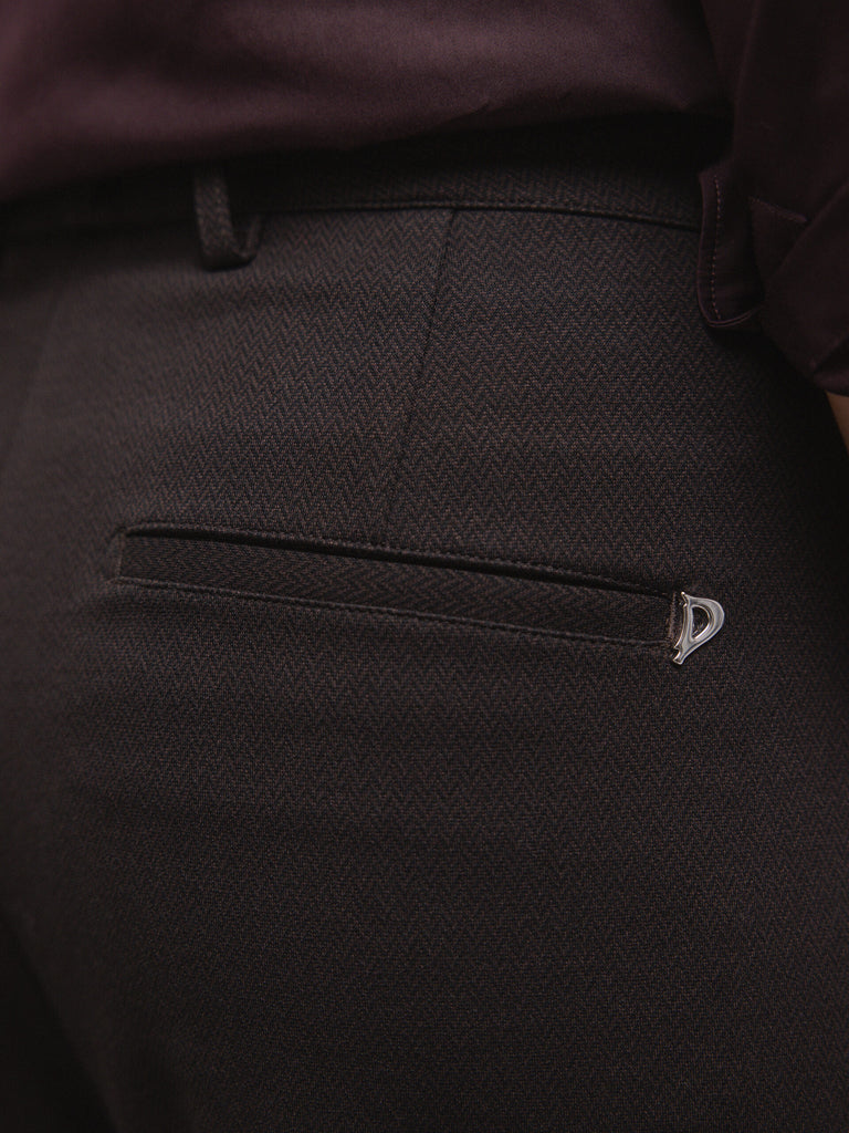 Pantaloni Tania loose chino, vita regolare, una pinces sul davanti, tasche a filetto posteriori, tessuto spigato in tinta, logo dondup.