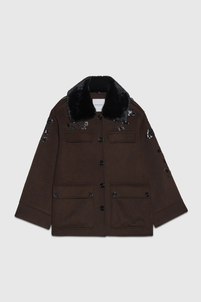 ERMANNO FIRENZE D47ED022EY1 Caban in double con ricamo paillettes