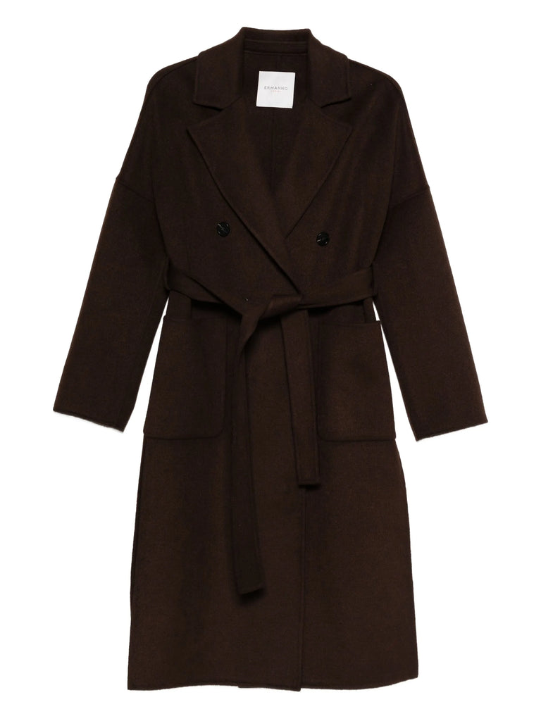 ERMANNO FIRENZE D47ED085EY2 Cappotto lungo doppiopetto in double di lana con cintura