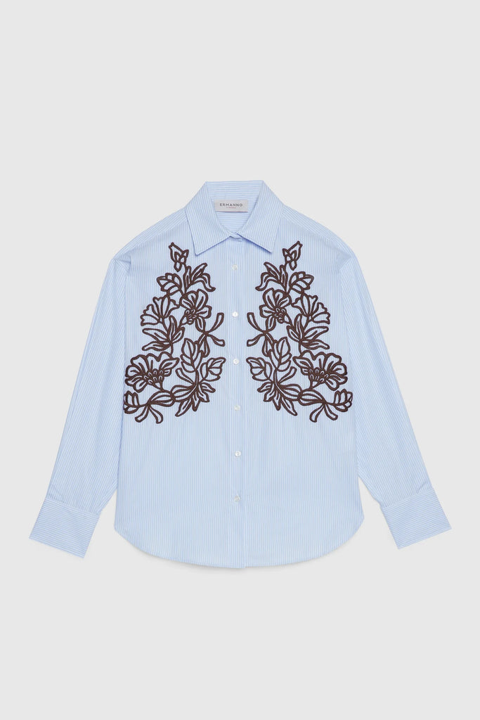 ERMANNO FIRENZE D47EK027ES0 Camicia in popeline a righe con ricamo in lana