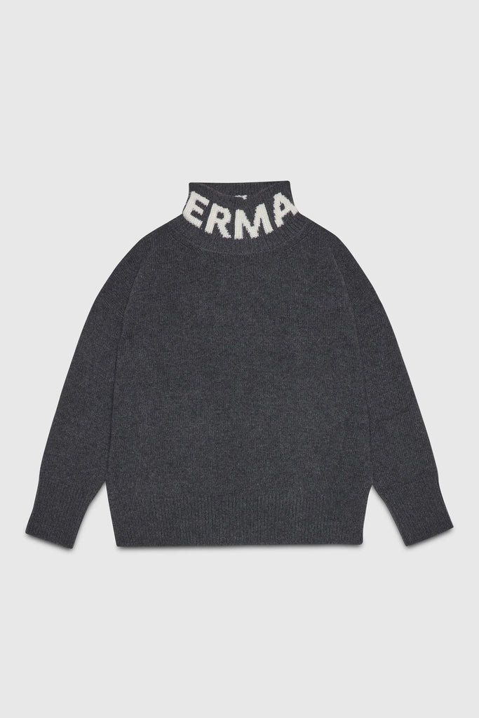 Maglia in lana rasata a collo alto con logo intarsiato in contrasto e impreziosito da cristalli trasparenti per un tocco di luce discreto ed elegante. La vestibilità di questo capo è regolare, si consiglia di acquistare la taglia abituale.