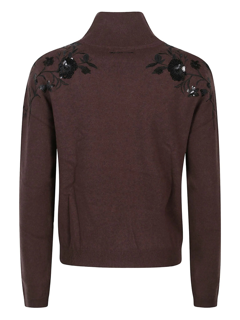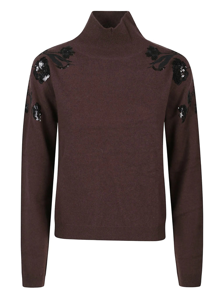Lupetto in morbida maglia di lana con prezioso ricamo floreale di filo e paillettes sulle spalle. Un dettaglio luminoso che dona femminilità ed eleganza al capo. Fit slim. La vestibilità di questo capo è regolare, si consiglia di acquistare la taglia abituale.