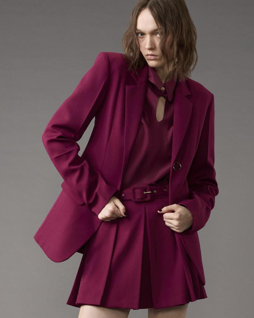 Camicia in tessuto tecnico fluido con cut-out a goccia sul davanti e chiusura posteriore con bottoni. Maniche lunghe con polsini arricciati e spacchi anteriori con chiusura posteriore con bottoni. Spalline interne.